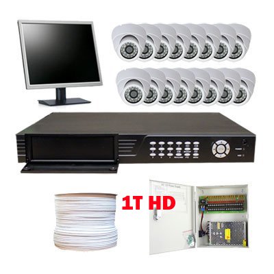 Complete High End Package of 16 Channel HDMI Real Time (1T HD) DVR Surveillance CCTV Security Camera System w/ 16 Pack 700TVL 3.6mm Varifocal Lens, 24pcs IR LEDs, 65.6 feet IR Distance Indoor Cameras + 1 Free 19" Security Monitor (Easy Installation)GW2556SV-N - 16 channel network DVR with 1T HD; CD software and manual; GWLCD19IN: Free 19" LCD Flat Panel Display Monitor; 16 x GW727W - 1/3" Exview HAD CCD II with Effio-E DSP Devices Camera; 1 x GW1000RG59: 1000 Feet RG59 Siamese Power/Video Combo Cable; GW1218-10A: 1 x 18 ports power box; 16 x Power pigtail (GW098); 32 x GW10009: Twist On BNC Male Connector.