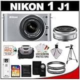 Nikon 1 J1 10.1 MP Digital Camera Body with 10mm f/2.8 & 10-30mm VR Lens (Silver) with 32GB Card + Case + (2) UV Filters + Tripod + Wireless Remote + Accessory Kit