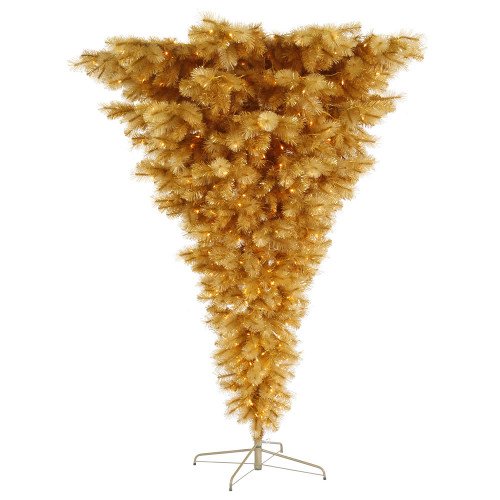 7' Pre-Lit Gold Glitter Mixed Pine Cashmere Upside Down Christmas Tree - Clear