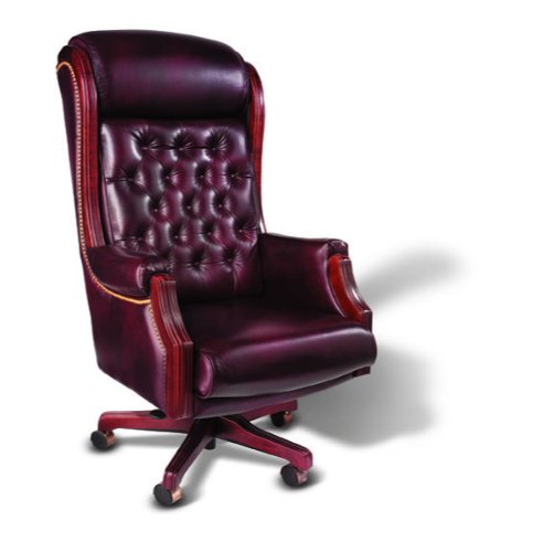 #Traditional button tufted chair Generous head pillow Wood frame and base with steel inner foundation Knee tilt mechanism with lock and pneumatic seat height Tilt tension control Hand applied nail accents Vinyl Edge Protection Standard One Touch Pneumatic Seat Height Adjustment Five Prong Wood Base Choose from Several Wood Finishes, Fabrics, Leathers & Vinyls for 7 Day Ship A classic design for the traditional office suite or 'grande' home office