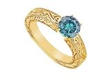 Blue Diamond Ring : 14K Yellow Gold - 0.50 CT Diamonds Size 14.5A round snowy blue diamond is prong-set in the center. The decorative band features delicate feminine designs. Made in 14K yellow gold this ring has a total weight (TDW) of 0.50 ct.