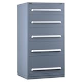 | ✚✚✚ Modular Drawer Cabinet, 5 Drawers, Gray Stanley� Vidmar� Modular Storage CabinetsAdjustable partitions and dividers allow configuring compartments to meet specific needs; Fully extendable drawers are guaranteed against failure.400-lb. capacity per drawer, based on evenly distributed loads All-welded steel; powder-coated finish Single key locking system Shipped with drawer interiors installed, except G8291 All cabinets are 27-3/4" deep Modular Drawer Cabinet, Preconfigured, Eye Level Series, Cabinet Height 59 In., Cabinet Width 30 In., Cabinet Depth 27-3/4 In., Number of Drawers per Cabinet 5, Drawer Capacity 400 lb., Number of Compartments per Cabinet 37, Steel Construction, Color Gray, Power Coat Finish, Aluminum Handle, Includes Dividers and Partitions