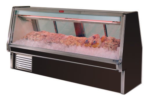 Fish & Poultry Service Case, Double Duty Refrigeration, Black Exterior & White Interior, Endless, Size: 53.5 X 34.5 X 124.5 .