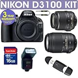 NIKON D3100 DIGITAL SLR CAMERA + NIKON 18-55mm VR LENS + NIKON 55-200mm DX LENS + 16GB MEMORY + D900 FLASH FOR NIKON + MEMORY CARD READER+ 3 YEAR CELLTIME WARRANTY